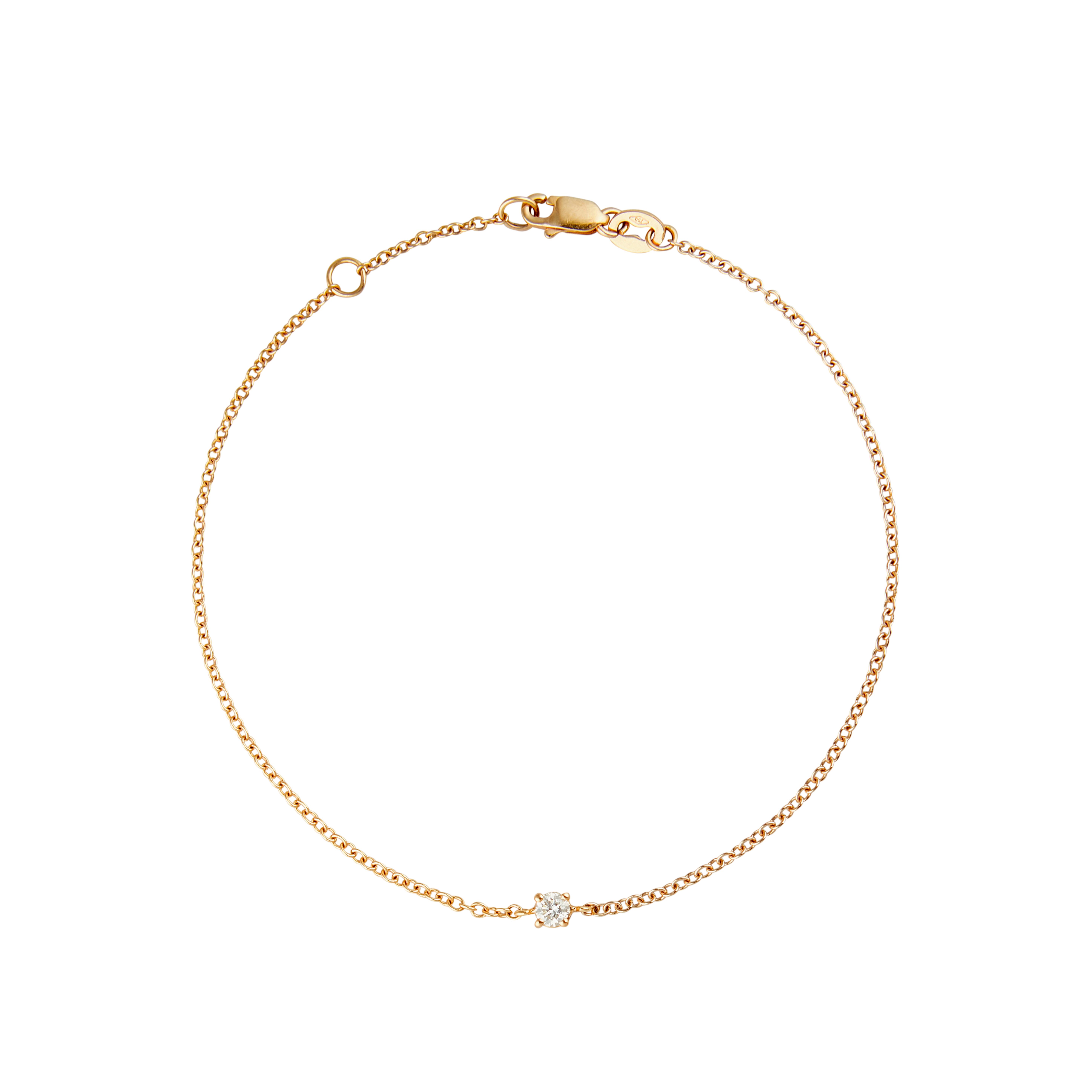 Solitaire bracelet är ett klassiskt armband med en rundankarlänk samt en briljantslipad diamant infattad i fyra klor.